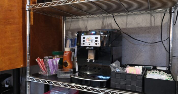 ソーダストリームやコーヒーマシンが完備され、利用者様がホッと息抜きする場所です。